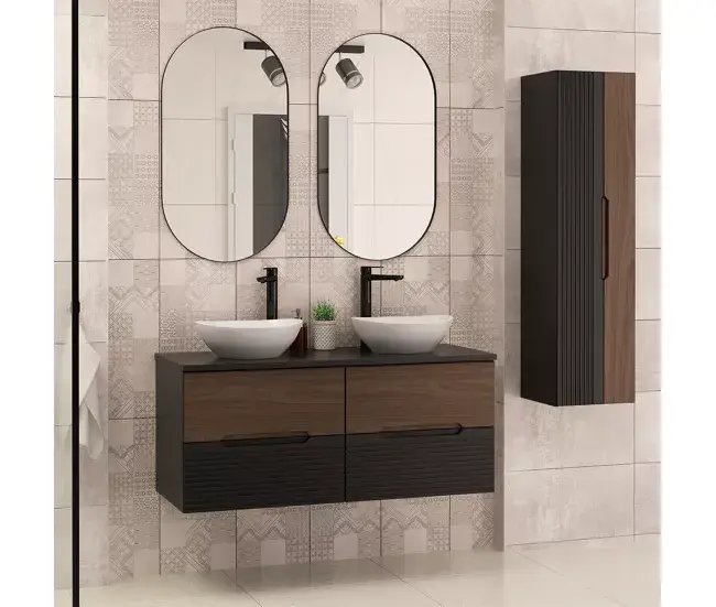 Mueble doble lavabo 120cm Sylla Negro y madera