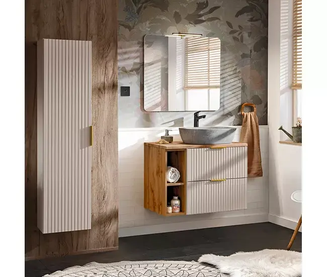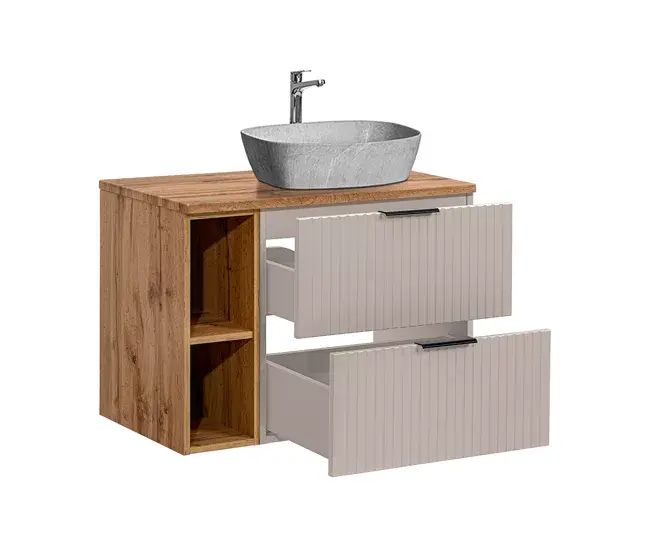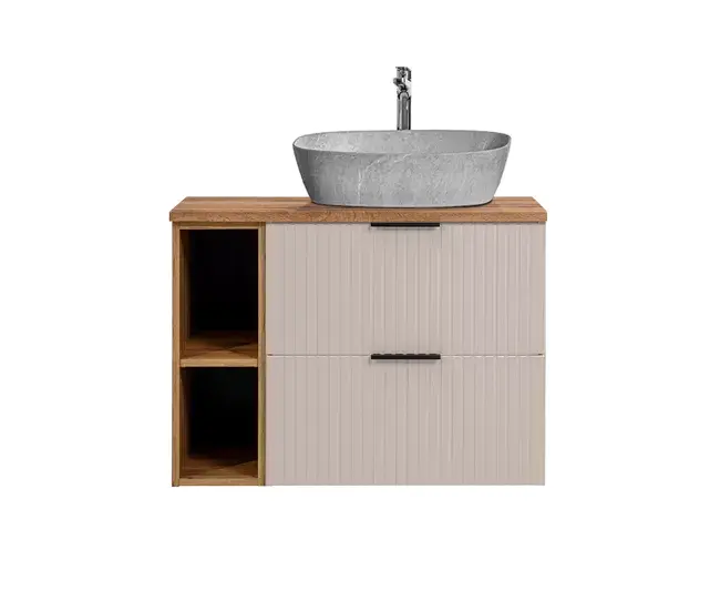 Mueble lavabo individual imitación piedra 80cm 2 compartimientos Adriel Cachemira y Madera