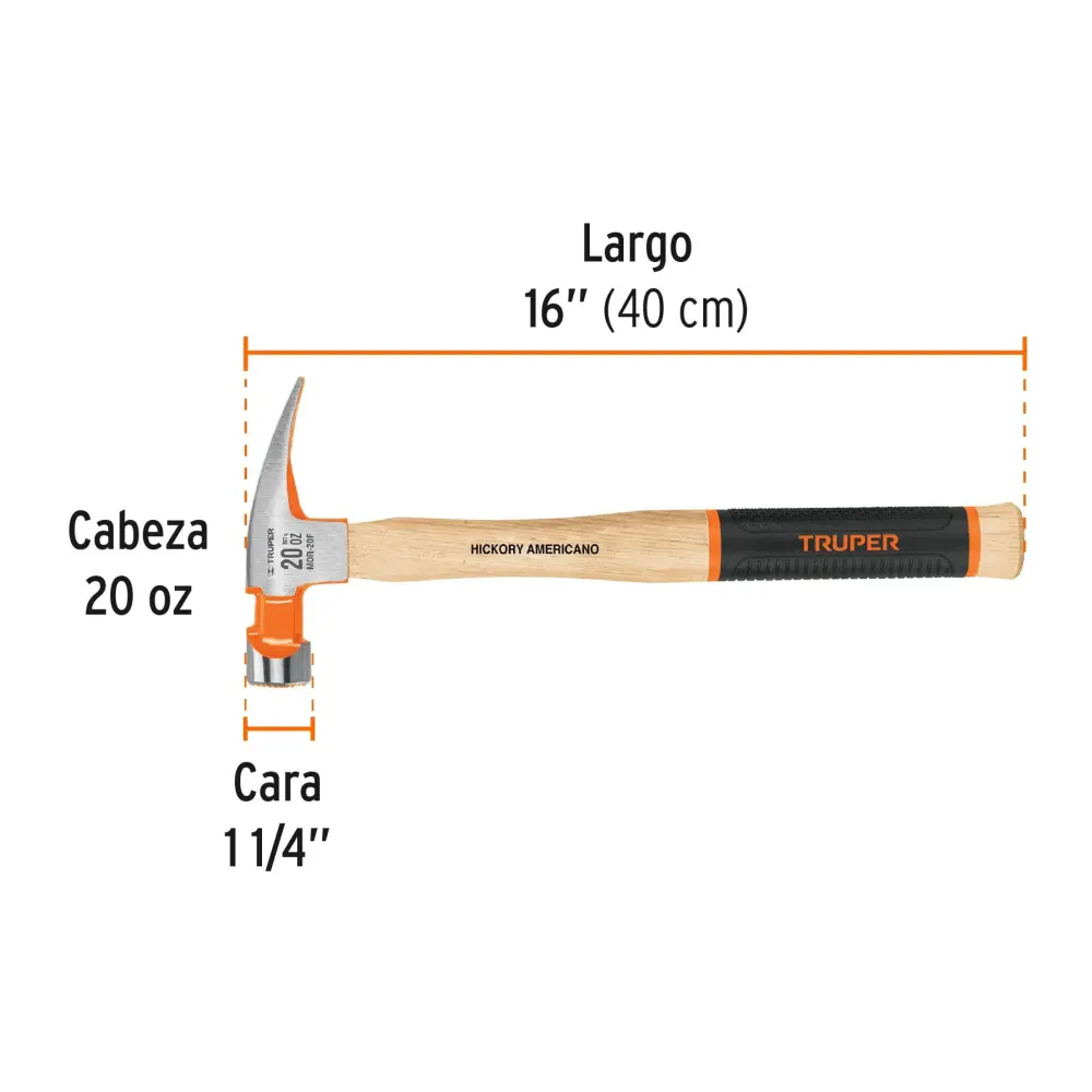 Martillo pulido uña recta , boca fresada, mango hickory