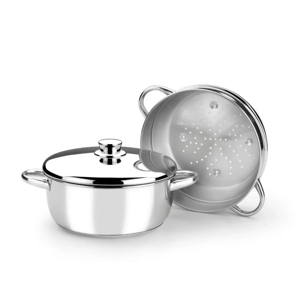 Both the pot and the steamer are made of 18/10 stainless steel , and stand out for their durability and their ability to withstand daily use without losing their characteristic shine.