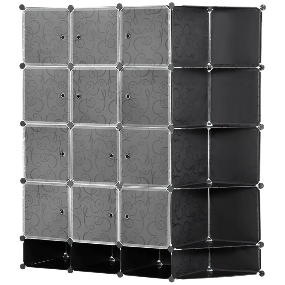 Organizador modular Pino Homcom 12 puertas + 2 barras negro/blanco ✔ Base amplia para distribuir mejor el peso ✔ Diseño plano que no ocupa espacio en la pared 🛒 Sujeta todo de forma segura y práctica