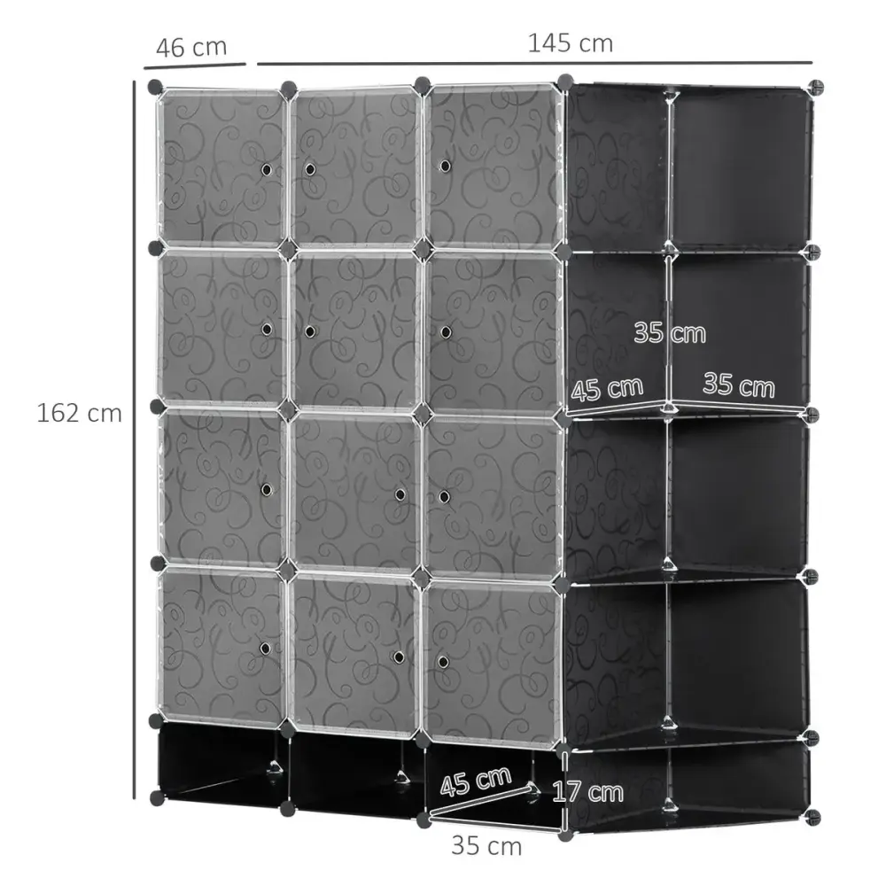 ¿Harto de no saber dónde meter tanta ropa, zapatos y demáscachivaches? ¡Pues aquí tienes la respuesta perfecta! El organizador modularmodelo Pino de Homcom es justo lo que necesitas. Fabricado con plástico PP yuna estructura de acero, este mueble es de lo más resistente y duradero, idealpara un uso a largo plazo. No importa si tienes toneladas de ropa, juguetes olibros, este organizador tiene espacio de sobra para todo. Formado por varioscompartimentos de diferentes medidas, 12 puertas y 8 abiertos puedespersonalizarlo como quieras, adaptándolo a cualquier rincón de tu casa. ¡Asíque dile adiós al desorden! Su diseño moderno y elegante con patrones únicos seincorporará idealmente con tus otros muebles. Además, las puertas con cierrede imán magnético son súper prácticas: se abren y cierran sencillomente ymantienen tus cosas a salvo del polvo.