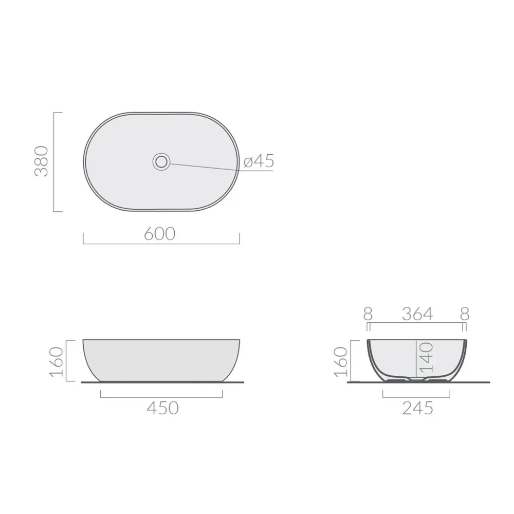 - Tipo: Lavabo de encimera ovalado
