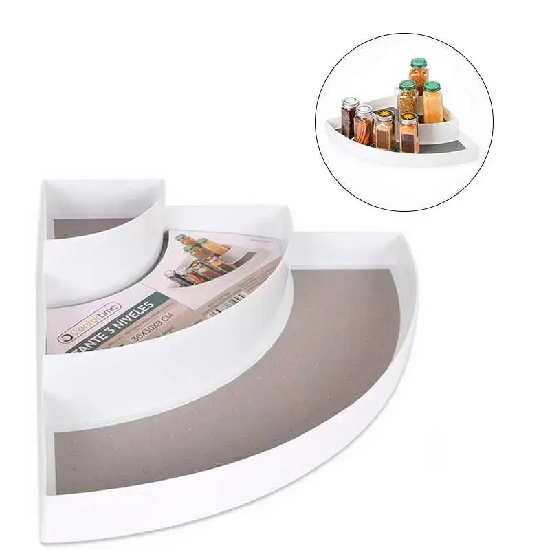 ¿Cuentas con poco espacio en la encimera de tu cocina y ya no sabes como preparar tus utensilios y condimentos? Entonces el estante Non Slip de la marca Confortime es perfecto para ti. Podrás colocarlo en una esquina y gracias a sus 3 niveles aprovecharás el espacio al máximo. Está fabricado en ABS de color blanco con alfombrillas color gris en cada estante. Organiza tus especias, condimentos, salsas y todo lo que necesites tener a mano mientras estás cocinando. Es muy higiénico, resistente y sencillo de limpiar. Un gran aliado para las encimeras de tamaño reducido, ¡no te quedes sin él!