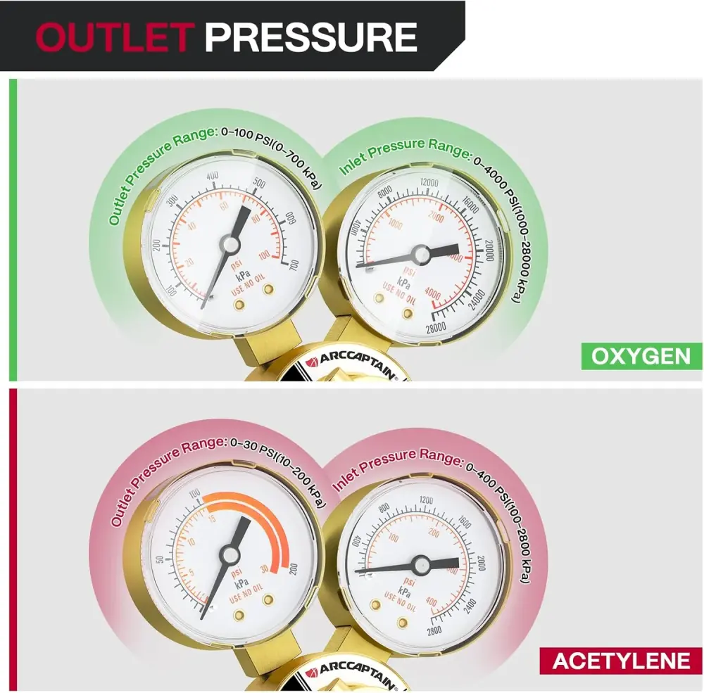 | Included Components | 1x Acetylene Regulator, 1x Oxygen Regulator, 2x hose barb, 2x hose clamps |