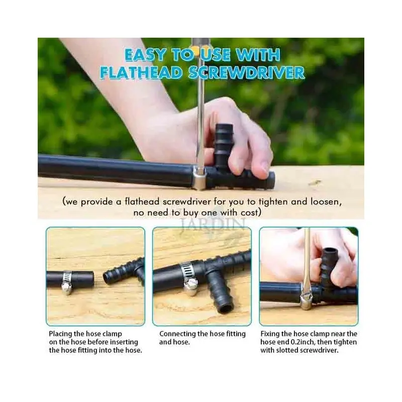 - abrazadera de manguera (incluida la correa, la carcasa y el tornillo) fabricadas en acero inoxidable de alta resistencia. Durable a la sal, antioxidante, anticorrosión, impermeable, resistente al aceite. Las abrazaderas son resistentes, fuertes y fiables.