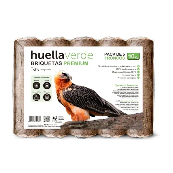 Pack de 10 kg compuesto de 5 troncos en bolsa 100% reciclable (60 % de plástico reciclado).