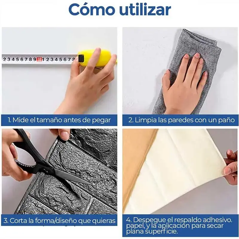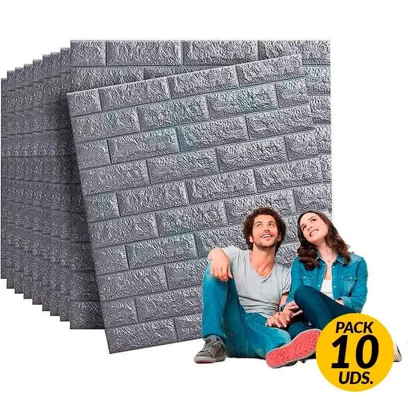 ¿Te apetece replanear tu dormitorio, salón, comedor o destacar sencillamente alguna pared en concreto? Con este pack de 10 paneles decorativos para pared con dibujo de ladrillo en 3D gris, marcarás la diferencia. Están fabricados con materiales muy duraderos y resistentes, por lo que son ideales para impermeabilizar el espacio, para usar en aislamientos acústicos y térmicos. Su instalación es muy sencilla: primero mides el tamaño del espacio, limpias bien las paredes con un paño, cortas los paneles con la forma o el diseño que te guste, despegas el papel del adhesivo y lo colocas en la pared. ¡Listo! No necesitan pegamento o herramientas adicionales. También son muy seguros, ya que no contienen metales pesados por lo que son más sostenibles. ¡Olvídate de las reformas y de gastos elevados!