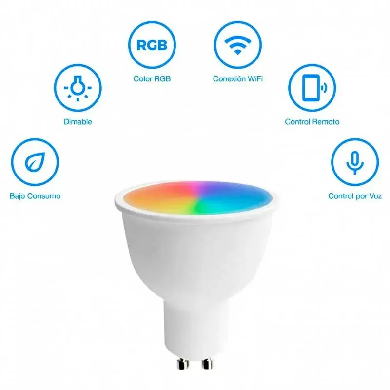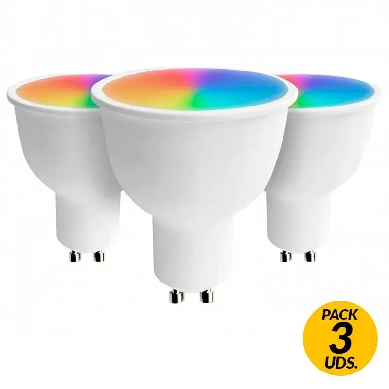 El pack de 3 bombillas Wifi LED con forma de foco de la marca 7hSevenOn Home son ideales para iluminar tu hogar de manera divertida gracias a su amplia gama de tonalidades de luz. Podrás programar su encendido y apagado y se conectan a la granate Wifi de manera muy sencilla instalándolas como una bombilla estándar. Funcionan por control remoto mediante la App «Smart Life” que podrás descargarte desde tu dispositivo móvil, disponible para Android e IOS. También son compatibles con Alexa y Google Home. Están diseñadas con tecnología SMD LED de alta potencia, lo que proporciona un alto ahorro energético.