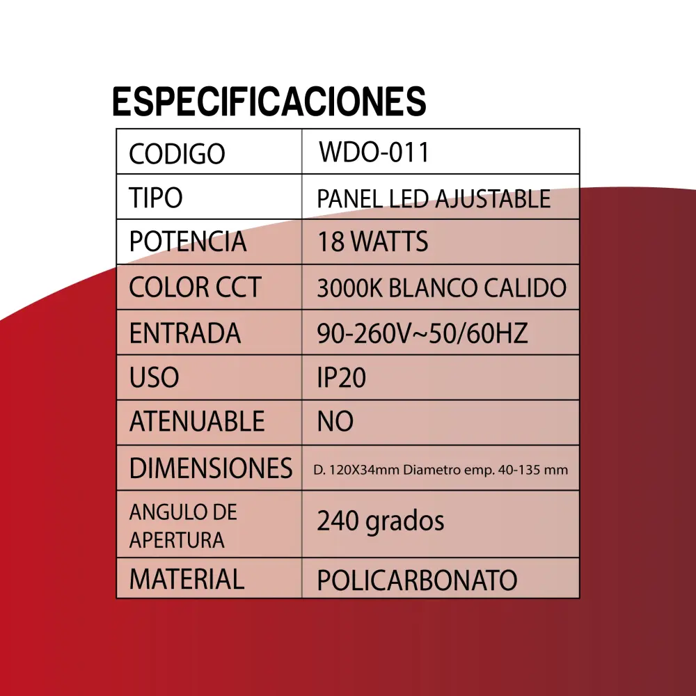 PANEL LED REDONDO EMPOTRABLE AJUSTABLE WINLED WDO-011