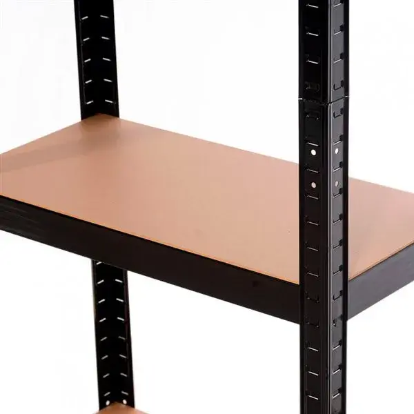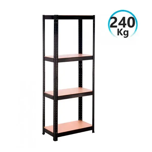 Estantería multiusos metálica con 4 baldas ajustables. Estantería adecuada para uso doméstico. Soporta un peso máximo de 60 kilogramos en cada una de sus 4 baldas y un peso total máximo de 240 kilogramos. Estantería personalizable fabricada en acero de color negro y tableros de MDF (fibras de densidad media). Incluye tacos antideslizantes para depositar en las patas y en la parte superior. Es totalmente resistente y estable gracias a las barras transversales estabilizadoras que incorpora debajo de cada una de las baldas. – Color: Negro – Material: acero galvanizado/MDF – Incluye tacos antideslizantes – 4 baldas ajustables – Soporta un peso de 60 kilogramos por balda – Soporta un total de 240 Kg – Fácil montaje sin herramientas ni tornillería – Dimensiones: 148 x 60 x 30cm (alto x largo x fondo)
