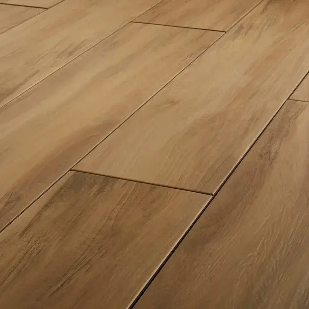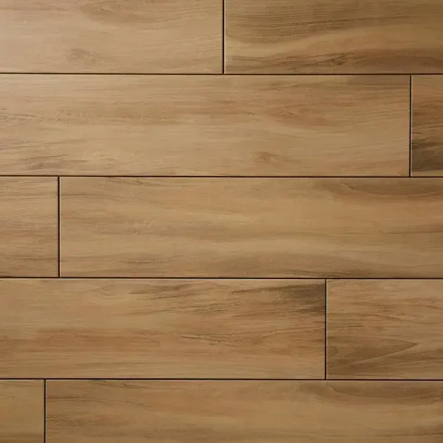 Suelo cerámico con efecto madera en color madera natural, nogal.