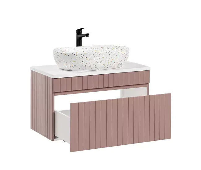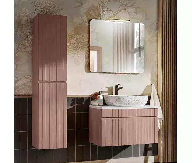 Conjunto mueble lavabo individual 80cm y columna Zelie Rosado y Blanco