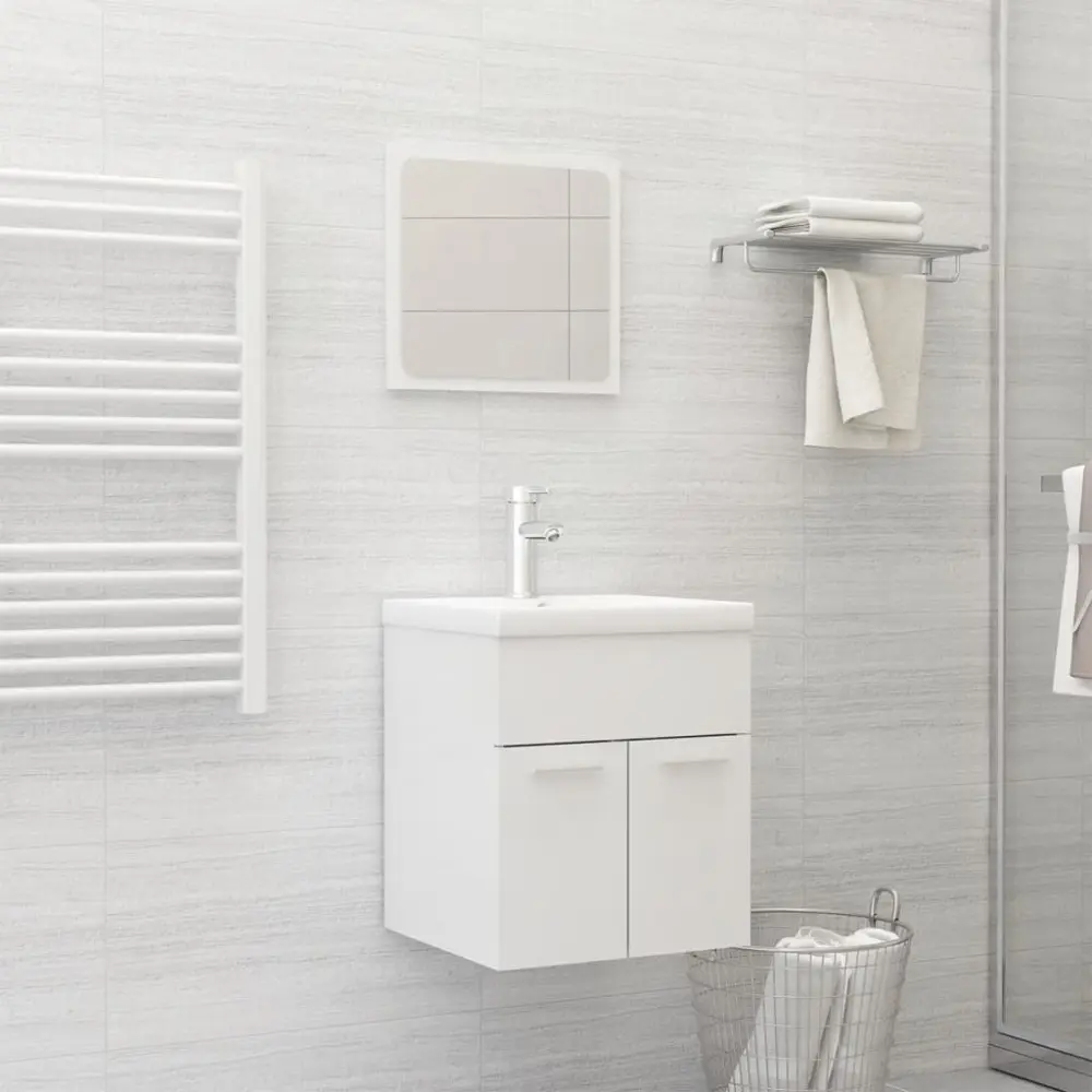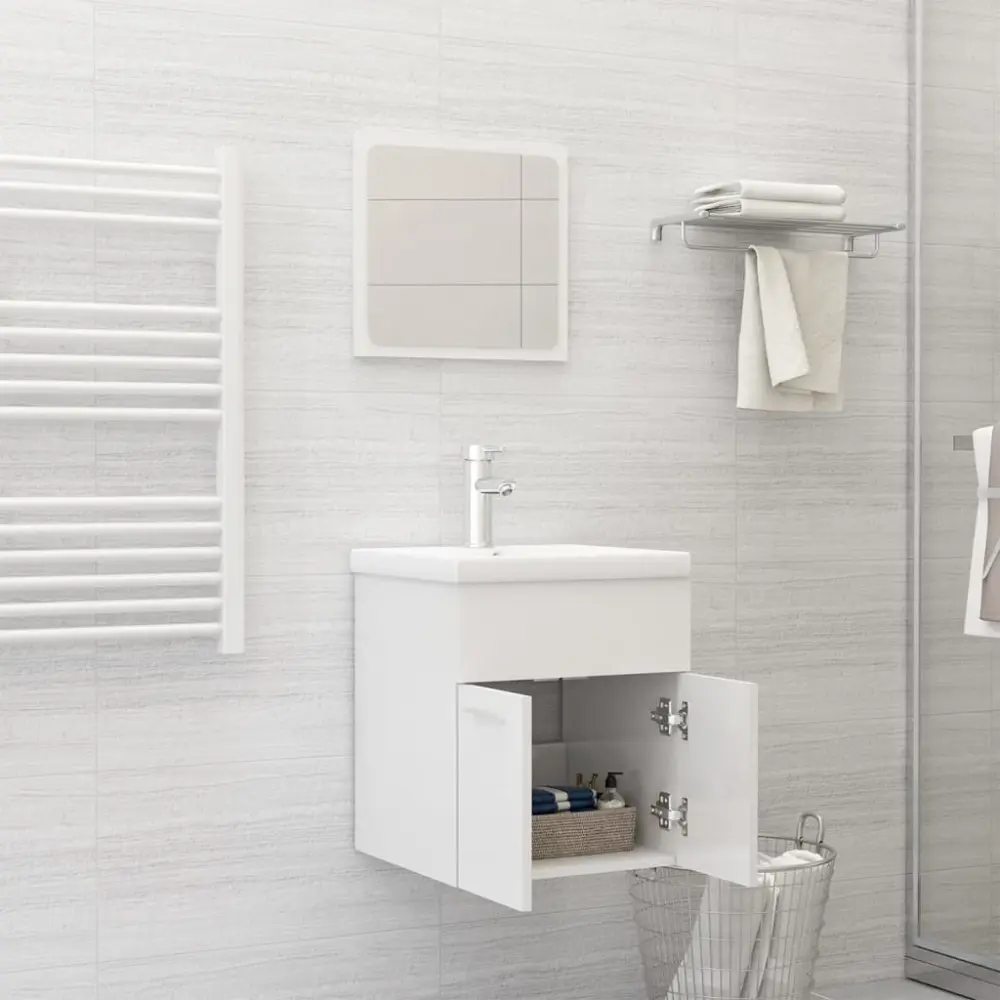 vidaXL juego de muebles de baño madera de ingeniería blanco ✓ Material que no se decolora con productos de limpieza ✓ Estantería trasera para productos de higiene personal ► Organiza tu baño con estilo