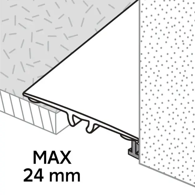 Proporciona un acabado profesional, inteligente y elegante a tu proyecto de suelo con este perfil de remate de aluminio. Este perfil extraplano es perfecto para fabricar una transición suave entre dos superficies de suelo. Salva la junta de dilatación y protege los bordes descubiertos del revestimiento de suelo.