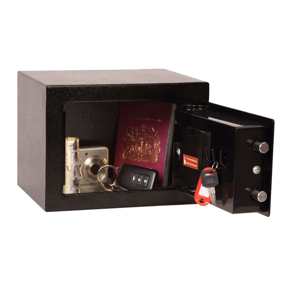 La serie Phoenix Compact Home & Office SS0721 son ideales para su uso en el hogar o en la oficina para el almacenamiento de objetos de valor y dinero en efectivo.PROTECCIÓN DE SEGURIDAD – Recomendado para cubrir efectivo durante la noche por 1,500 euros o 15,000 euros en objetos de valor.CERRADURA – Fáciles de utilizar con su avanzada cerradura digitalizado ‘amigable con el usuario’. Para una mayor tranquilidad, estas cajas fuertes están equipadas con un dispositivo de anulación de llave (se suministran 2 llaves).CONSTRUCCIÓN – Pernos de cierre dobles y bisagras internas ocultas para una mayor seguridad.CARACTERÍSTICAS ESPECIALES – Equipado con tres ganchos internos para llaves.FIJACIÓN – Preparado para fijación en el suelo o en la pared, se suministran tornillos adecuados para paredes de ladrillo y suelos de hormigón.COLOR – Acabado en pintura negra de alta calidad resistente a los arañazos.Especificaciones