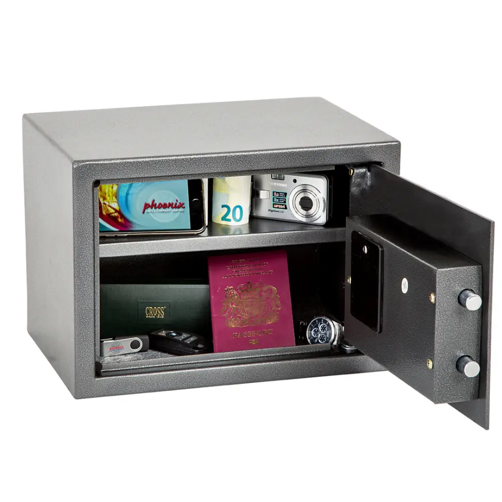 EL PHOENIX VELA está elaborado para su uso en el hogar o en la oficina para el almacenamiento de objetos de valor, dinero en efectivo y documentos crucials. Con su cerradura electrónica sencillo de utilizar y de alta calidad, es ideal para múltiples aplicaciones.PROTECCIÓN DE SEGURIDAD – Recomendado para una cobertura nocturna de 1.500 euros en efectivo o 15.000 euros en objetos de valor.CERRADURA – Equipado con una cerradura electrónica avanzada y sencillo de utilizar, con un sistema de bloqueo de solenoide de alta calidad anti-manipulación o anti-golpe. Para mayor tranquilidad, estas cajas fuertes están equipadas con una función de anulación por llave (se suministran 2 llaves).ILUMINACIÓN – Equipado con una luz interior LED brillante para que el contenido pueda verse sencillomente, incluso en los armarios más oscuros.CONSTRUCCIÓN – Pernos de cierre activos dobles y bisagras internas ocultas para mayor seguridad.FIJACIÓN – Preparado para su fijación al suelo o a la pared, con pernos de