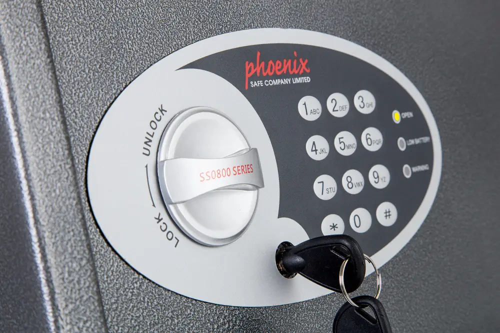 Phoenix vela hogar oficina t2 caja fuerte con cerradura electrónica ● Bandejas extraíbles para clasificar objetos de valor ● Soporte para tablet o dispositivo dentro de la caja ▶ Refuerza la seguridad de tus objetos de valor