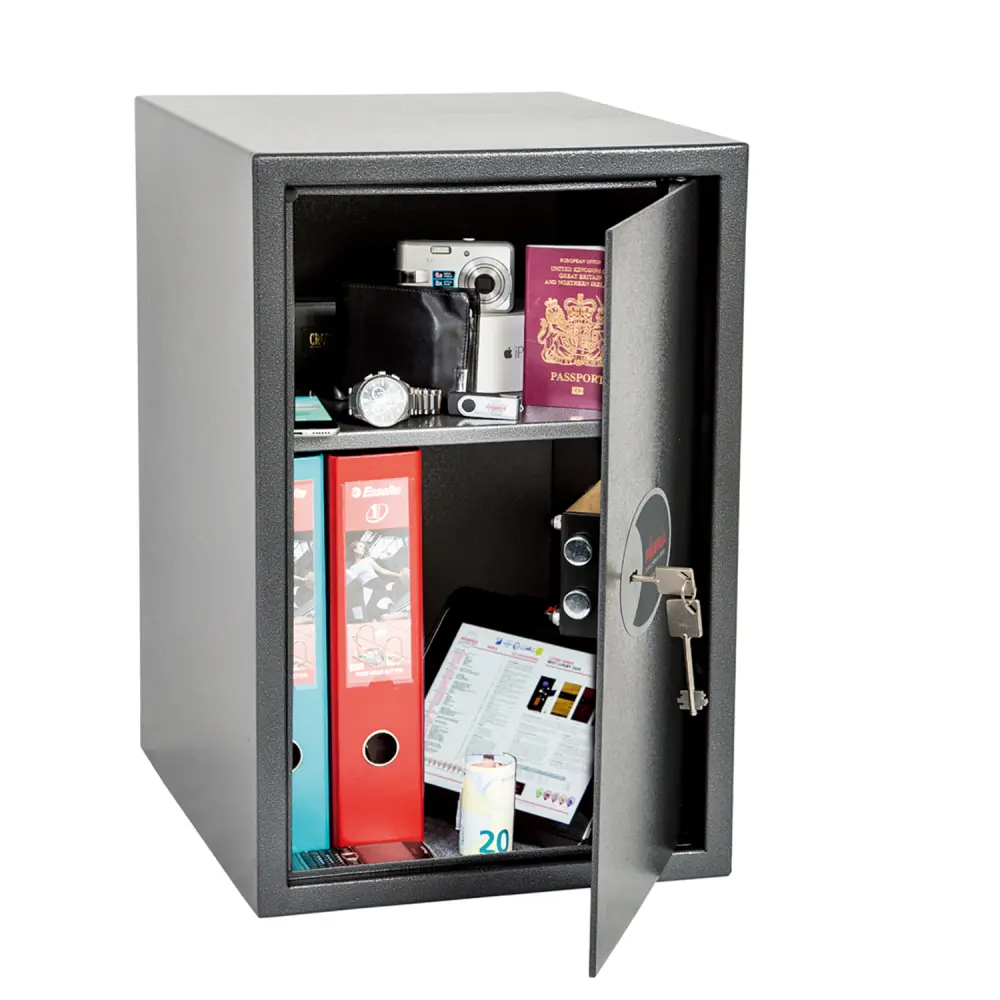 EL PHOENIX VELA está ideado para su uso en el hogar o en la oficina para el almacenamiento de objetos de valor, dinero en efectivo y documentos crucials. Con su cerradura de llave de alta calidad, es ideal para múltiples aplicaciones.PROTECCIÓN DE SEGURIDAD – Recomendado para una cobertura nocturna de 1.500 euros en efectivo o 15.000 euros en objetos de valor.CERRADURA – Equipado con una cerradura de llave de alta calidad y viene completo con dos llaves.CONSTRUCCIÓN – Pernos de cierre activos dobles y bisagras internas ocultas para mayor seguridad.FIJACIÓN – Preparado para su fijación al suelo o a la pared, con pernos de fijación suministrados para paredes de ladrillo o suelos de hormigón.COLOR – Acabado en una pintura Metálica Grafito de alta calidad resistente a los arañazos.Especificaciones