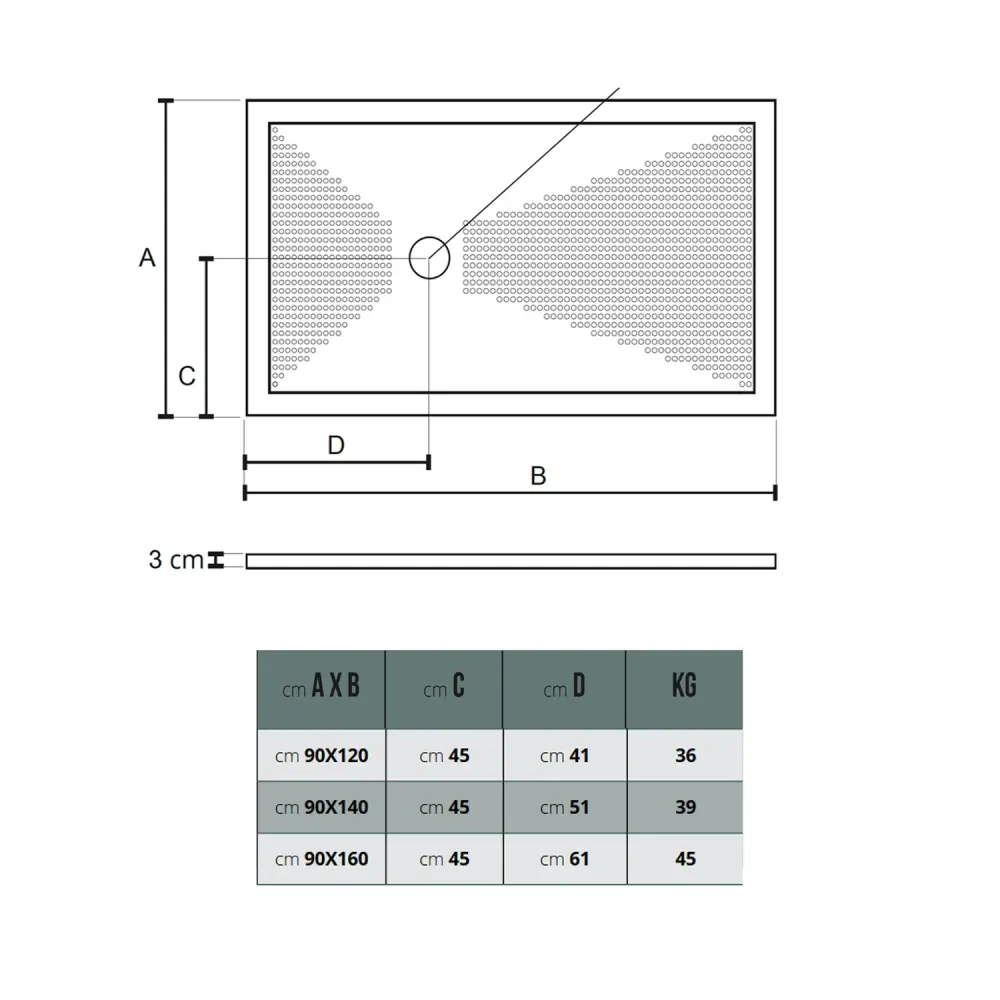 - Dimensioni: 90 x 160 x H 3 cm; peso indicativo 45 kg.