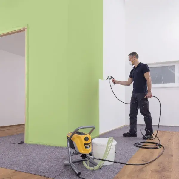 Su tecnología sin aire permite aplicar la pintura con menos neblina de pulverización y una cobertura perfecta. Sin fabricar bandas al pintar.
