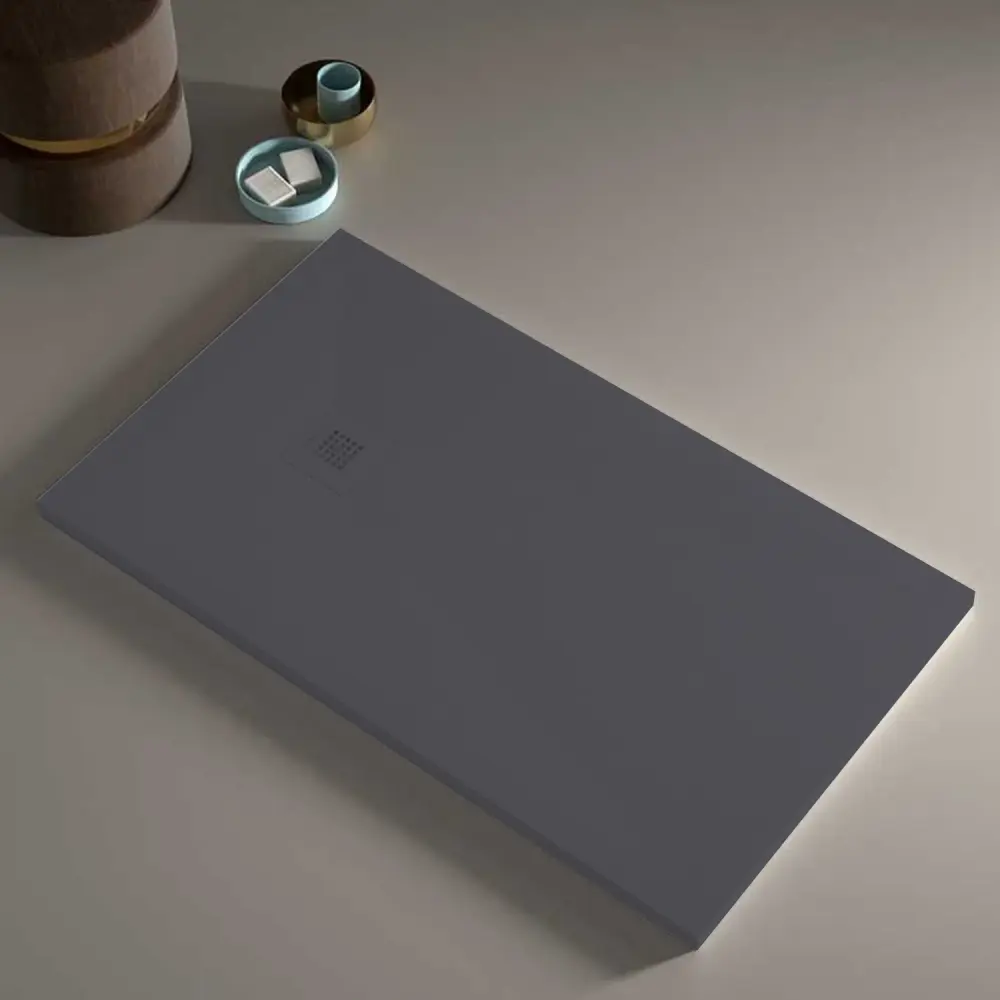 El plato de ducha Plus 70×150 cm en resina es una solución de diseño pensada para quienes buscan un complemento elegante y funcional para el baño. El efecto pizarra antracita y la textura materica aportan carácter a la zona de ducha, manteniendo un aspecto sobrio y contemporáneo. Fabricado con resina de alta calidad y en parte con materiales reciclados, integra estética, durabilidad y atención a la sostenibilidad. La superficie está diseñada para resistir el uso diario: antideslizante, poco absorbente y resistente a los arañazos y a las variaciones de temperatura.