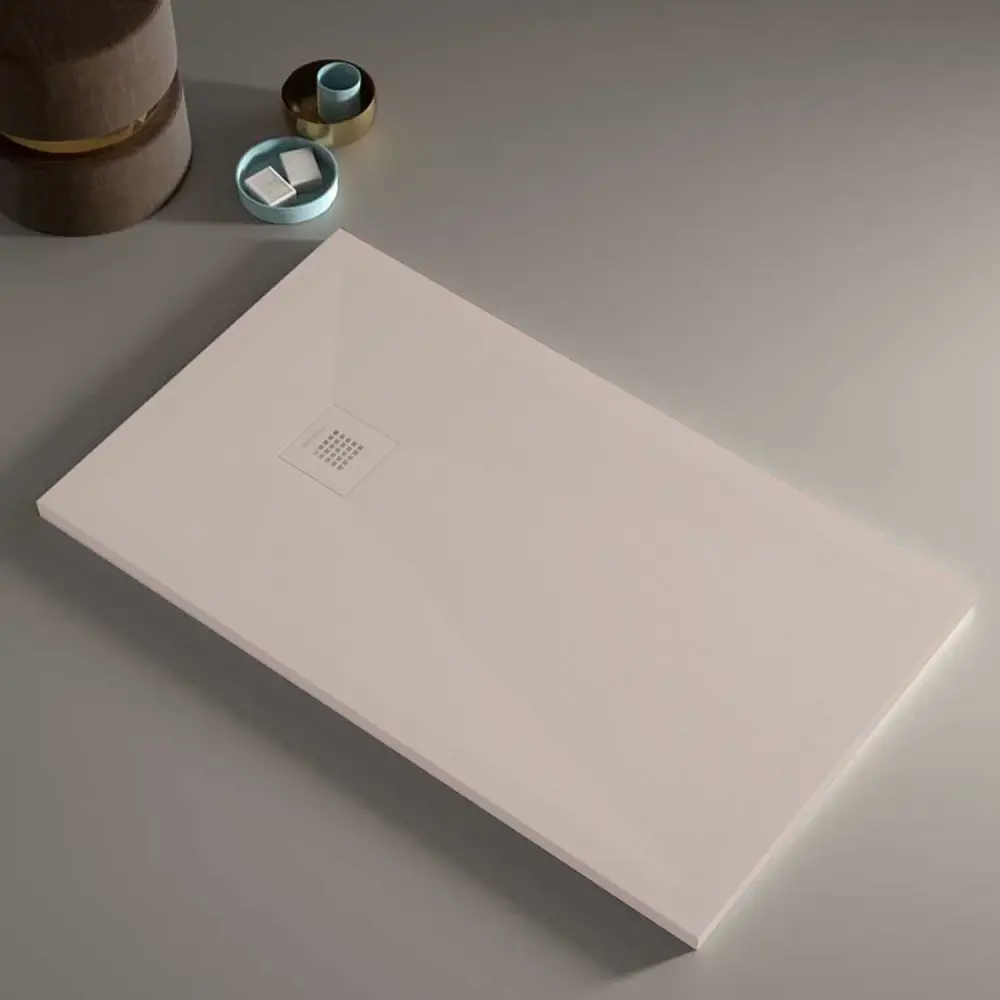 El plato de ducha Plus 90×160 cm en resina combina estética contemporánea y practicidad: su superficie efecto pizarra en color crema presenta un aspecto refinado y matérico, ideal para baños con diseño moderno o icónico renovado. Pensado para quienes buscan un elemento resistente y de fácil mantenimiento, ofrece una textura antideslizante y un acabado que realza el espacio sin sobrecargarlo. La composición avanzada garantiza baja absorción, excelente resistencia a los arañazos y estabilidad ante variaciones de temperatura, para un producto duradero en el tiempo. Completo con desagüe cuadrado y rejilla en acero inoxidable, está listo para la instalación tanto en nuevas construcciones como en reformas.