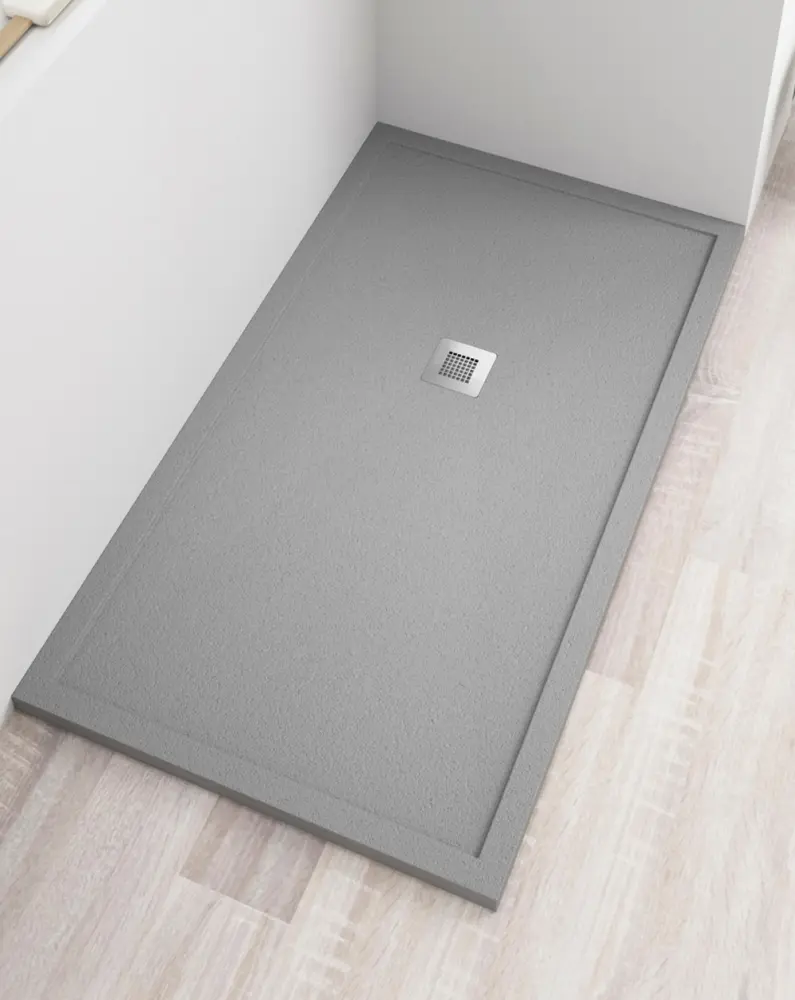 Plato ducha con borde valvula y rejilla | gris cemento