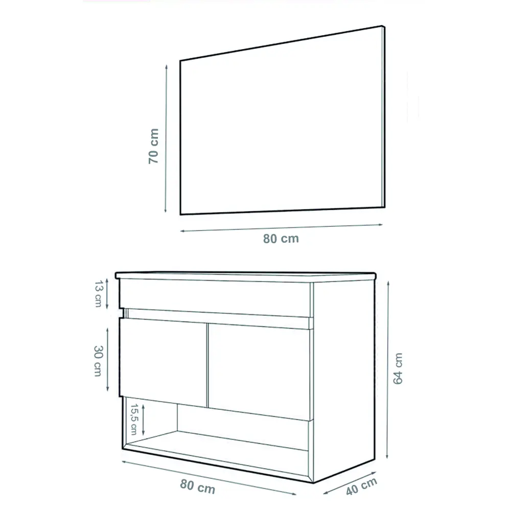 ✔ espejo liso 80×70 cm, lavabo unicolor surface extraplano 80x40cm