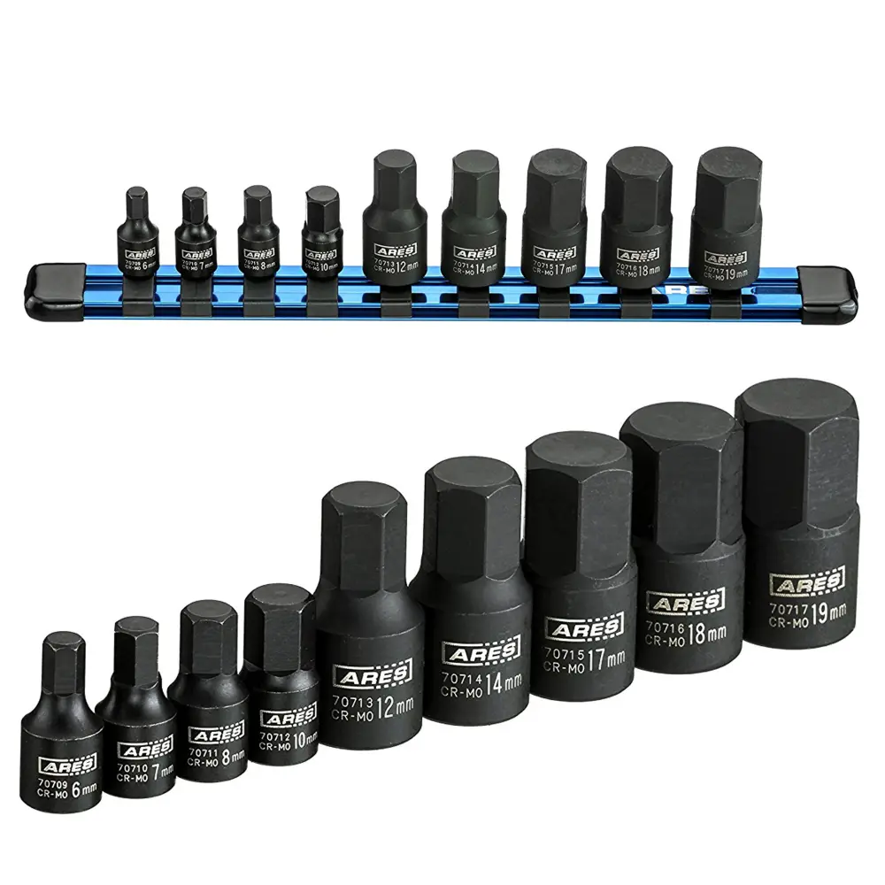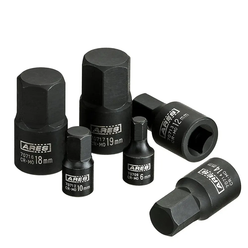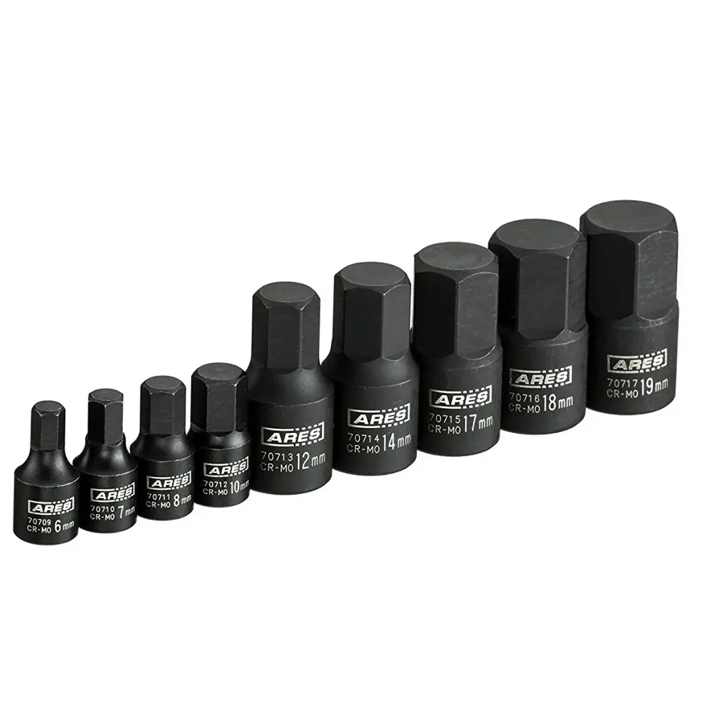 El juego de dados hexagonales de impacto métricos ARES proporciona un conjunto perfecto de nueve dados hexagonales con un diseño de perfil bajo para usar con su destornillador de impacto favorito en lugares estrechos y de difícil acceso. Con extremos de punta fresados con precisión para un ajuste exacto en todo momento, estos dados con punta son perfectos para reparar pinzas de freno o aflojar pernos hexagonales en los compartimentos de motor estrechos y confinados de la actualidad.