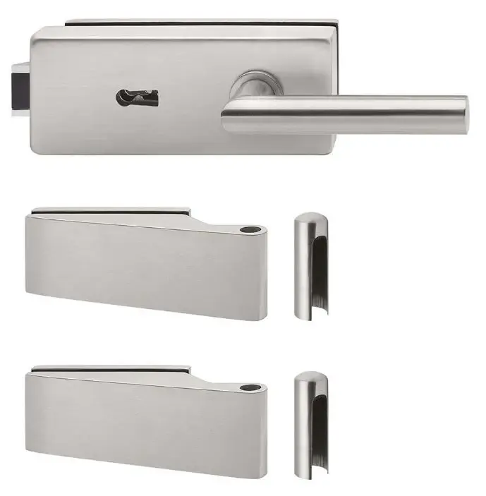 Pesada caja de cerradura para puertas de vidrio fabricada en acero inoxidable en una superficie finamente rectificada con pestillo susurrante para reducir significativamente el ruido de cierre. El seguidor de sujeción doble fija permanentemente el cuadradillo del par de manillas mediante muelles tensores, creando así una conexión no positiva entre el seguidor de la cerradura y el cuadradillo. Se reduce el bamboleo del par de manillas. Gracias a los adaptadores de pares de manillas 16/18 mm incluidos, puede combinar todos los pares de manillas de acero inoxidable con esta cerradura de puerta de cristal.,