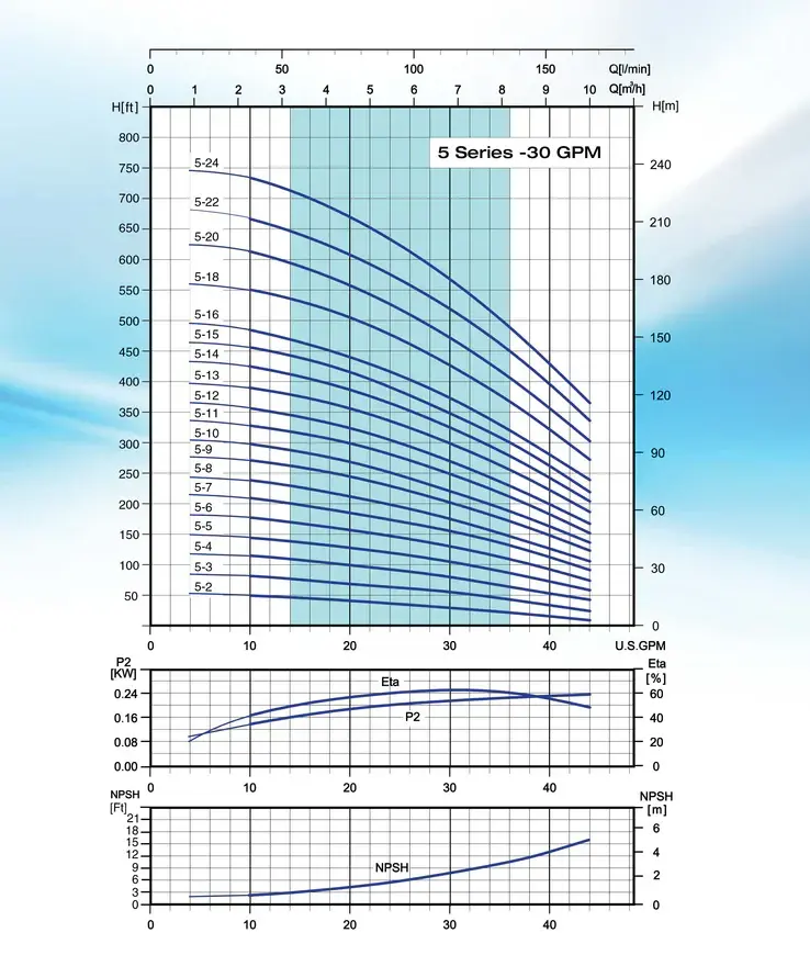 Máxima eficiencia a 30 gpm.