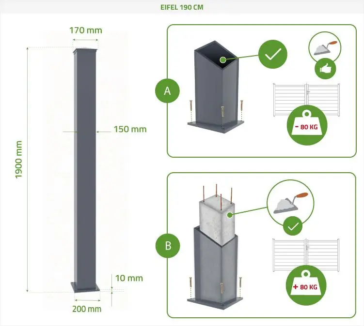 2 postes de aluminio Al.190cm gris