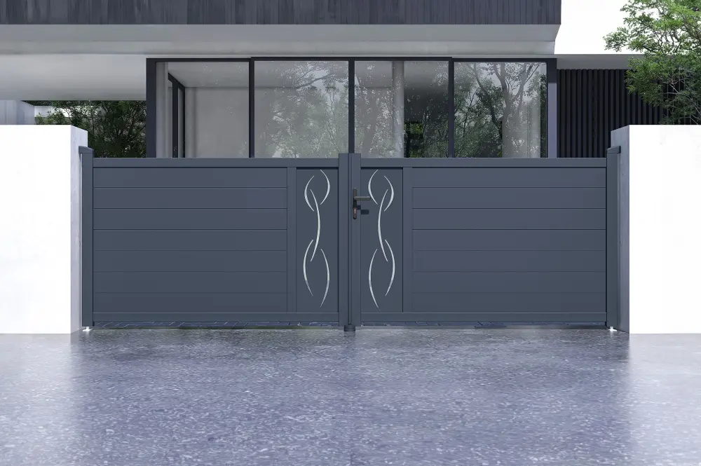 Puerta abatible life al. aluminio gris + 2 postes al. ★ Pomos con mecanismo antirrobo y llave codificada ★ Sistema de apertura con tres posiciones distintas → Mejora el aislamiento de tu hogar hoy