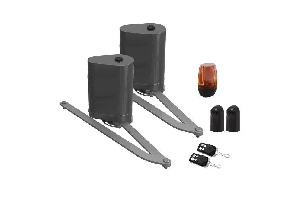 Puerta automática abatible nevis a. gris + motor con brazo ✔ Adaptable a diferentes grosores de poste sin modificar ✔ Soporte extra para aumentar la estabilidad de la estructura 🛒 Maximiza la vida útil de tus rejas