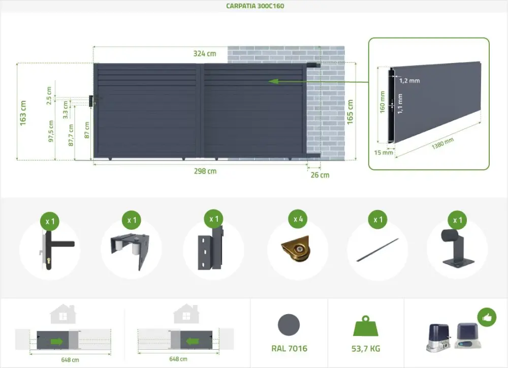 Puerta corredera carpatia al. alu gris + 2 postes al.