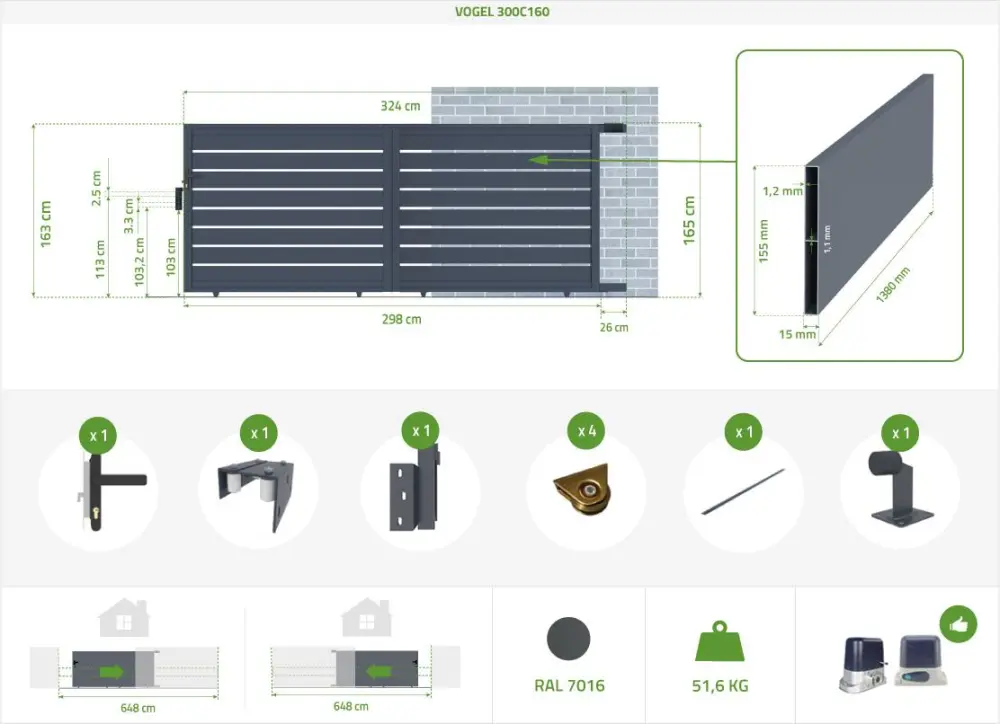 Puerta corredera vogel al. alu gris + 2 postes al. ★ Soporte para instalación en vehículos ★ Protección contra copia de señal por intrusos → Seguridad y comodidad al alcance