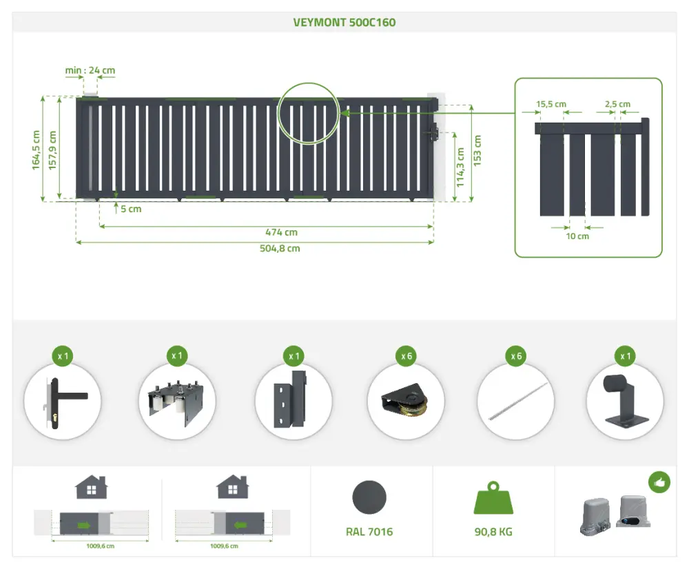 Puerta corredera veymont al. aluminio + motorización tanker c600