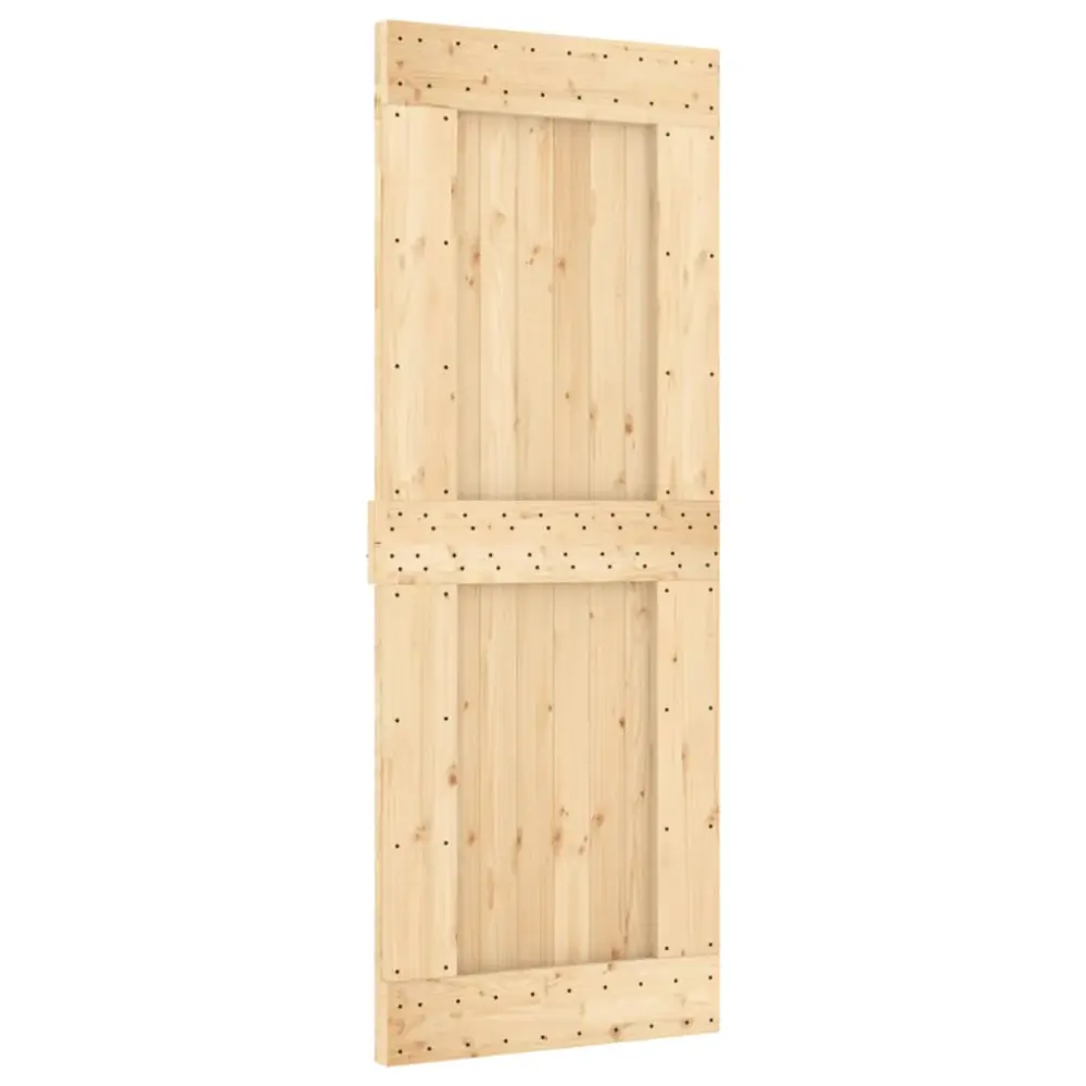 Esta puerta corredera de madera de pino macizo está fabricada con pino sin tratar de alta calidad, conocido por sus vetas rectas y nudos característicos que le dan un aspecto rústico. Las resistentes guías correderas de acero con recubrimiento en polvo garantizan estabilidad y durabilidad, mientras que los rodamientos internos aseguran que la puerta se abra y cierre de manera suave y silenciosa. Gracias a los topes de puerta y juntas de goma incluidos, se absorben los impactos, lo que achica aún más el ruido. Con dimensiones de 80 x 3,6 x 210 cm (An x P x Al), esta puerta se a