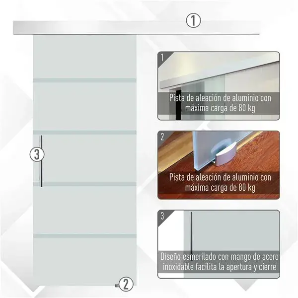 Puerta corredera Homcom de cristal translúcido con rayas ★ Bisagras regulables en tres dimensiones sin desmontar ★ Cerrojos con sistema de bloqueo para niños → Cierra con calidad, protege con herrajes