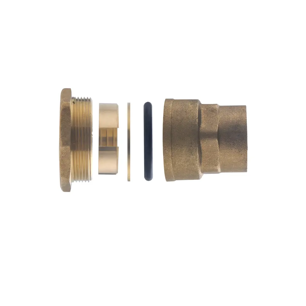 racor de latón que permite ejecutar un empalme entre 2 tubos de pe, red enterrada antes del contador. Fijación exterior