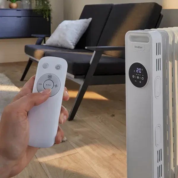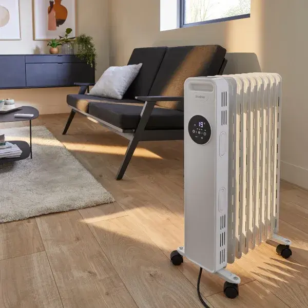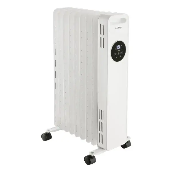 Radiador eléctrico de aceite modelo Pampero de Bodner, acabado blanco brillo, con 9 elementos para gran eficiencia.