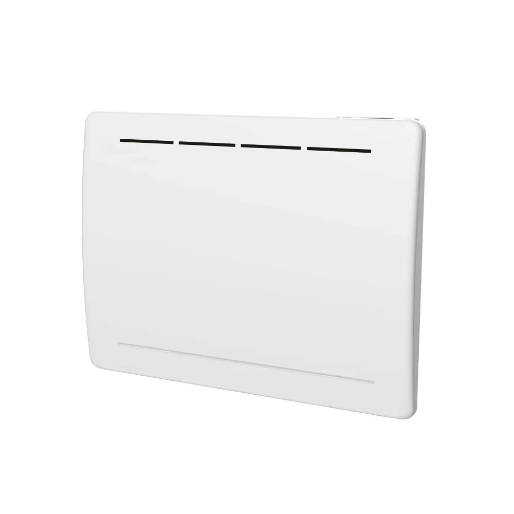 Calefactor seco por inercia, Control electrónico con pantalla digital LCD, 3 modos (modo Confort, modo Eco, modo Antihielo), 3 programas preinstalados, Programación diaria y por días, Detección de ventana abierta, Protección antisobrecalentamiento, Cable piloto, Panel curvo, Nueva Directiva ERP(2015/1188), Clase II, Norma CE/NF/RoHS/ERP. 2 años de garantíaCARACTERÍSTICAS: Radiador eléctrico de inercia seca FONTE 1000 W Superficie calefactora indicativa: (≤ 10m²) Programación LCD. Nuevo diseño moderno y elegante. Diseño made in France. Tono blanco. Calor suave. Núcleo calefactor: elementos de acero inoxidable Talla: 60×12,5x45cmPRINCIPIO DE FUNCIONAMIENTO: se compone de una placa de hierro fundido calentada por una resistencia que restituye el calor durante varias horas. La fundición recoge y acumula el calor producido por las resistencias eléctricas integradas en el material y lo libera lentamente. El poder de inercia térmica depende del material elegido (cerámica, hierro fundido…) y del volumen del núcleo calefactor.VENTAJAS: Aumento rápido de la temperatura, calor homogéneo, mejor relación calidad-precio, consume menos energía que los paneles radiantes y sigue difundiendo calor una vez apagados. Más confortable que un calefactor convector, se adapta suavemente a la temperatura deseada. La radiación del calor permite instalarlo en habitaciones grandes. La sensación de calor es suave y continua.INSTALACIÓN Y MANTENIMIENTO: Fácil instalación. Perfecto para estancias como el salón o la habitación de los niños. No requiere mantenimiento. Dispositivo de seguridad térmica de rearme automático. Fijación mural con cerradura. Kit de fijación incluido. 2 años de garantía. Empresa francesa con sede en Francia. Normas CE y NF.Especificaciones