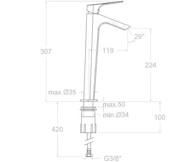 El grifo de lavabo monomando alto con acabado cromado de alta resistencia Diamond Finish es una opción elegante y duradera para tu baño. Su diseño moderno y sofisticado se adapta a cualquier estilo de decoración, brindando un toque de elegancia a tu lavabo.Este grifo cuenta con una salida de agua efecto cascada, que no solo es visualmente atractiva, sino que también proporciona una experiencia de lavado suave y relajante. Además, está equipado con un sistema de ahorro de agua que limita el flujo a 5 litros por minuto, lo que te consiente ahorrar agua sin comprometer la calidad de tu experiencia de lavado.La resistencia del acabado cromado Diamond Finish garantiza que este grifo mantendrá su brillo y aspecto impecable a lo largo del tiempo, resistiendo el desgaste y la corrosión. Además, cuenta con tecnología anticorrosión y Tourbillon patentados, lo que asegura su durabilidad y funcionamiento adecuado a largo plazo.En resumen, el grifo de lavabo mono