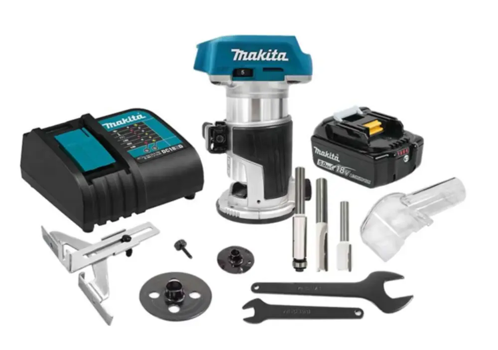 Recortadora router brushless Makita, inalámbrica de enchapados, perfecto para desbaste, cortes, ahuecar y trabajos de decoración.