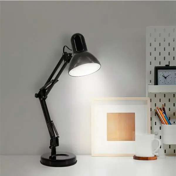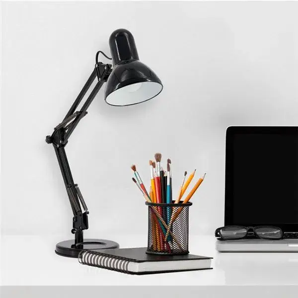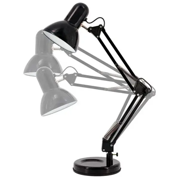 Esta lámpara flexo estilo arquitecto es práctica y perfecta para mesa de trabajo o estudio. Válida para bombillas E27 de un máximo de 60W, tiene certificación CE y Rohs. Es de diseño atemporal, basado en el diseño del primer flexo del arquitecto de J. Jacobsen 1937; L-1 Luxo. Color negro elegante, moderno y compacto. Podrás iluminar cualquier rincón de la oficina, contribuye a la lectura del ordenador y también servirá para mesa de estudio. Es articulable de montaje fácil, te tomará 2 minutos. El cable dispone de un interruptor para controlar el encendido y apagado.