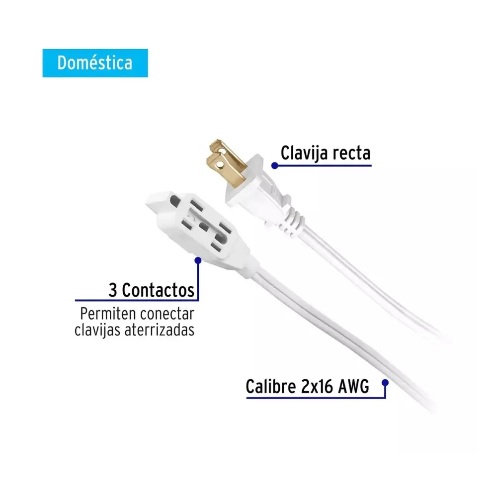 Extensión eléctrica doméstica 8 m clavija recta, blanca VOLTECK ED-8BR