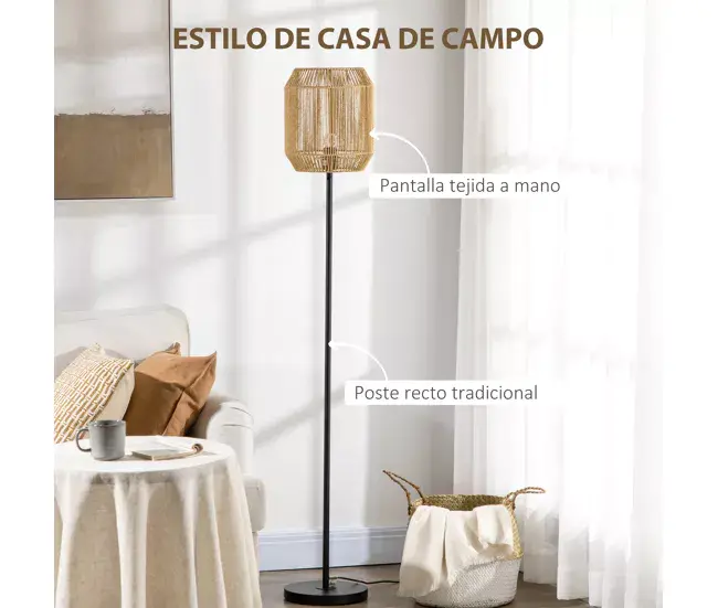 Una buena iluminación es fundamental, y esta lámpara de pie moderno de HOMCOM es perfecta para crear un ambiente agradable en tu hogar. Hecha con un marco de metal resistente y estable y una pantalla de cuerda de papel tejida a mano, esta lámpara es perfecta para cualquier entorno. Gracias a la pantalla de cuerda de papel que suaviza la luz e ilumina el entorno, esta lámpara ofrece un ambiente tranquilo y acogedor. Además, tiene un interruptor de pie para encender y apagar fácilmente. Características – Lámpara de pie de estilo elegante y natural – La pantalla, tejida a mano con cuerda de papel, le dará un toque natural y llamativo a cualquier ambiente – Ideal para tener en la sala de estar, el comedor, la oficina, entre otros – Interruptor de pie para encender y apagar fácilmente la luz – El cable de alimentación largo facilita la conexión a la toma de corriente – Creado con estructura de metal resistente, sólido e impecable para uso prolongado –