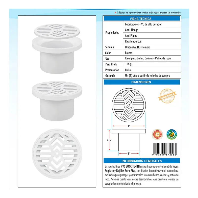 Rejilla de Piso Sifon 3X1.5 en PVC negra SKU:RS-3X1.5-07 PREGUNTAS FRECUENTES: ¿GENERAN FACTURA? Sí, emitimos facturas legales con IVA incluido. Somos un régimen común y realizamos facturación electrónica. ¿MANEJAN VARIEDAD DE TONOS? Si, manejamos una amplia gama de colores entre bronce, cobre antiguo para personalizar tus griferías y accesorios. Realizamos acabados de aspecto antiguo en griferías nuevas o usadas. Transformamos tus griferías para darles un toque clásico y sofisticado. ¿SON FABRICANTES? Si, somos fabricantes de tus ideas, fabricamos hermosas griferias y accesorios de excelente calidad para que amables tus espacios de la mejor manera. En GRIFOS CENTER, convertimos tus ideas en realidad. Fabricamos griferías
