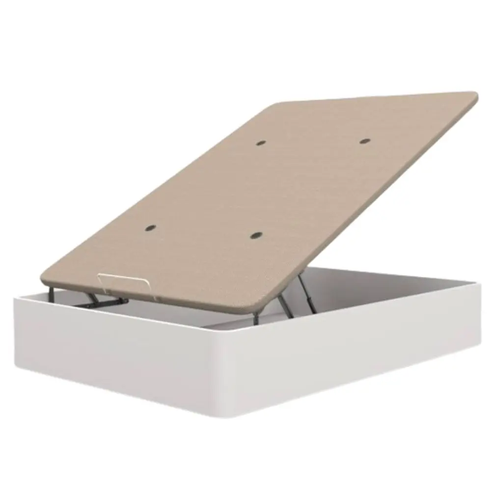 Canapé abatible con tapa tapizada, tejido 3D transpirable, reforzada y resistente, gracias a sus barras de refuerzo transversales y a su tablero de madera aglomerada de alta resistencia.